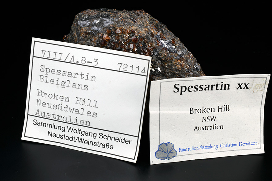 Spessartine garnet and galena - North Mine, Broken Hill, Broken Hill district, Yancowinna Co., New South Wales, Australia
