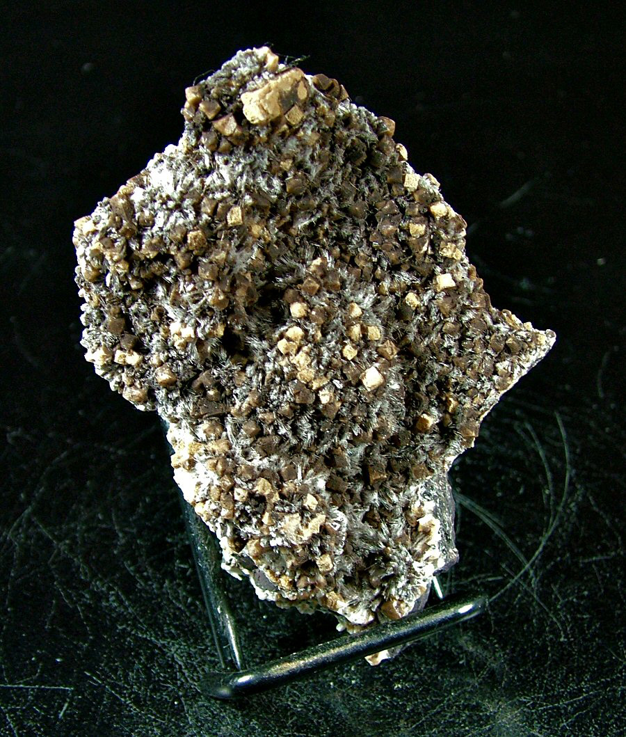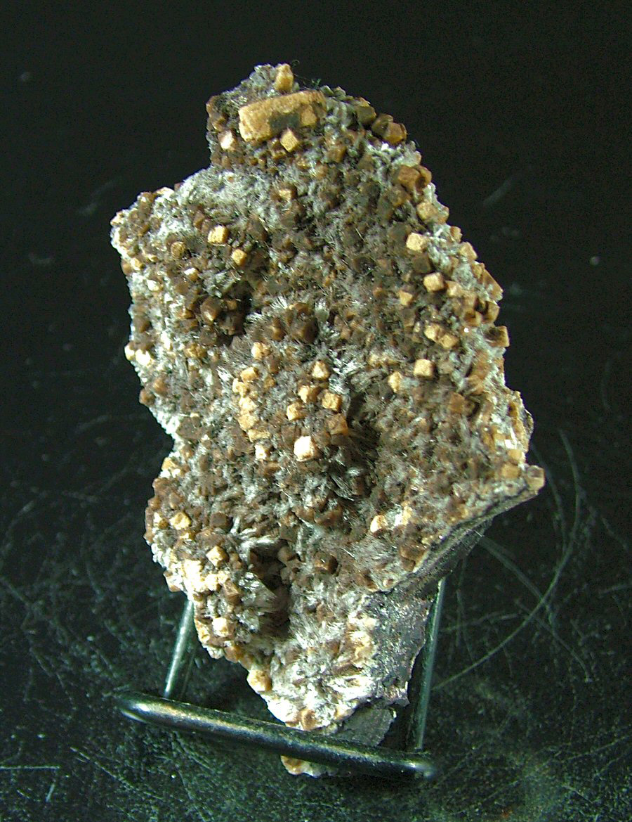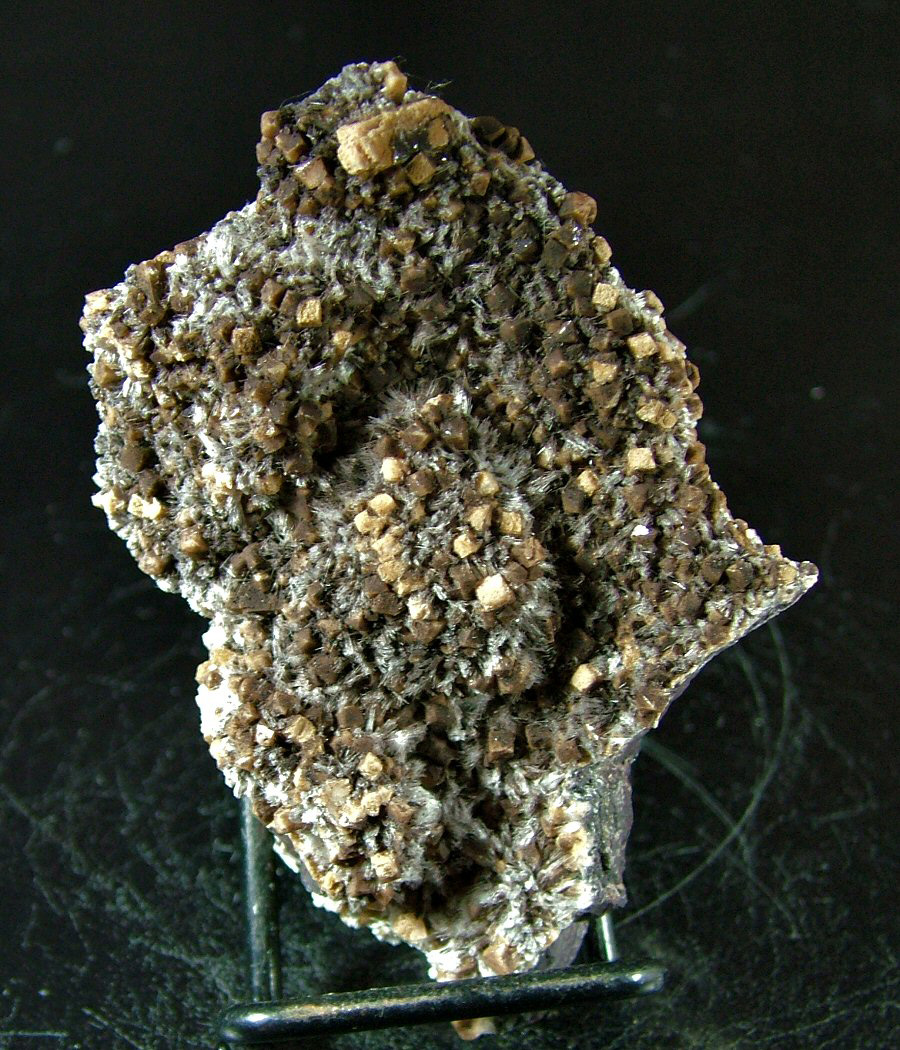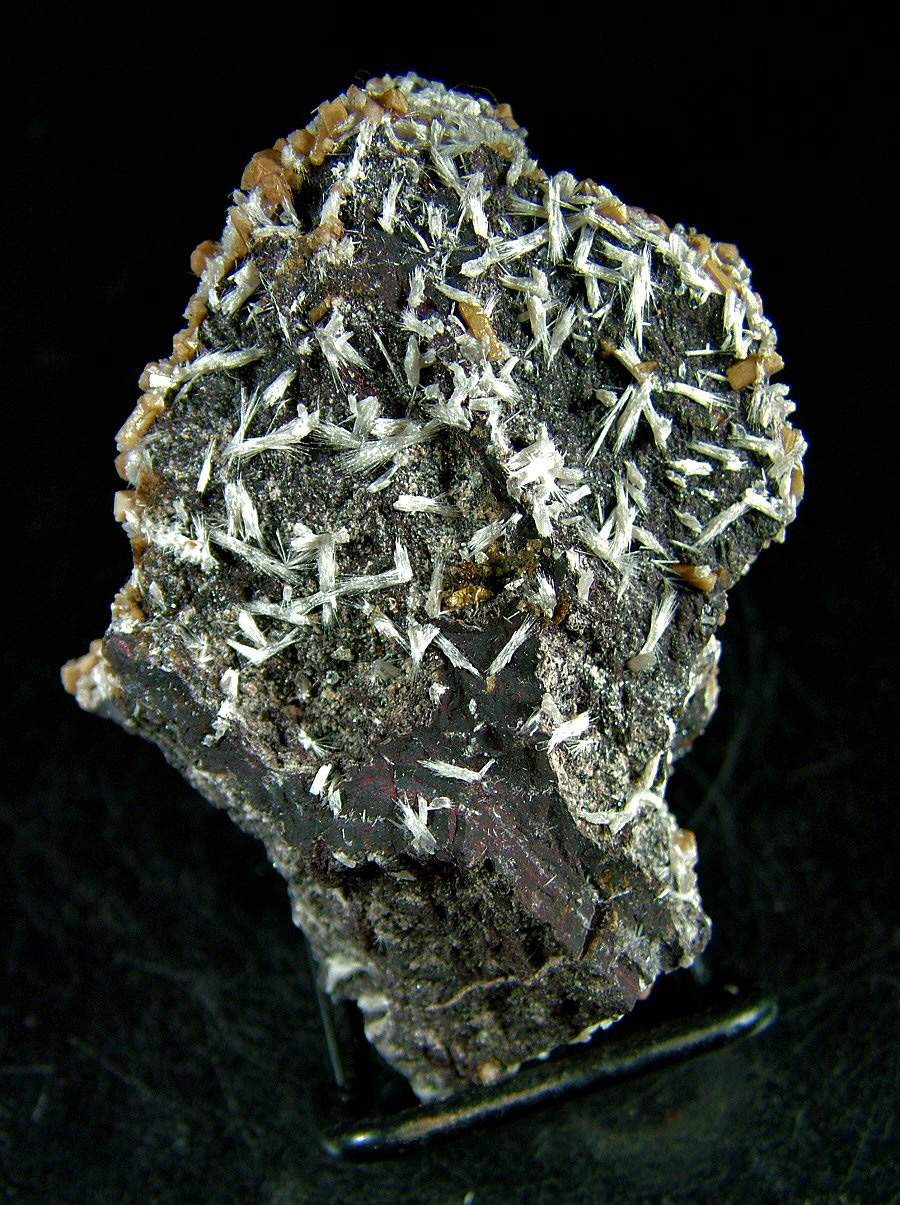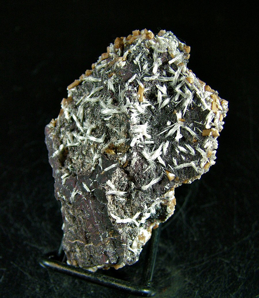 Silky tufts of Bultfonteinite up to 8 mm cover a side of the sample, accompanied by beige little Olmiite's crystals that are prevailing on the opposite side. Rare mineral, difficult to find on the market.