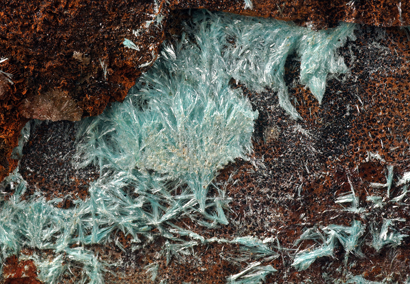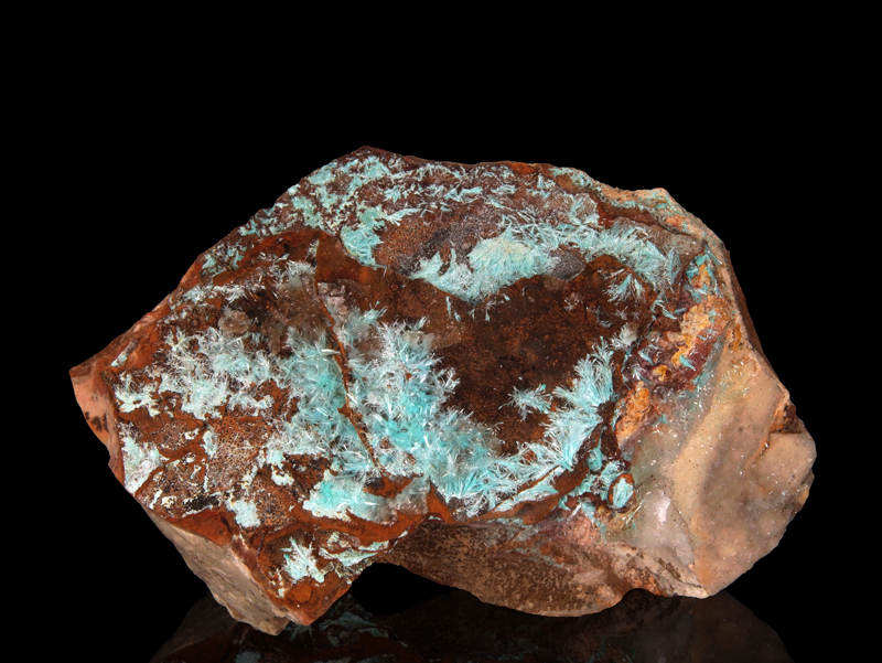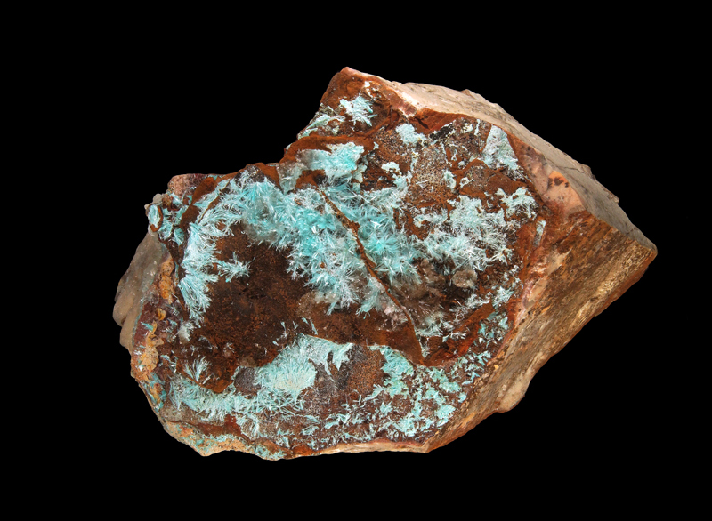 Classic deep blue aurichalcite needles on limonite matrix.