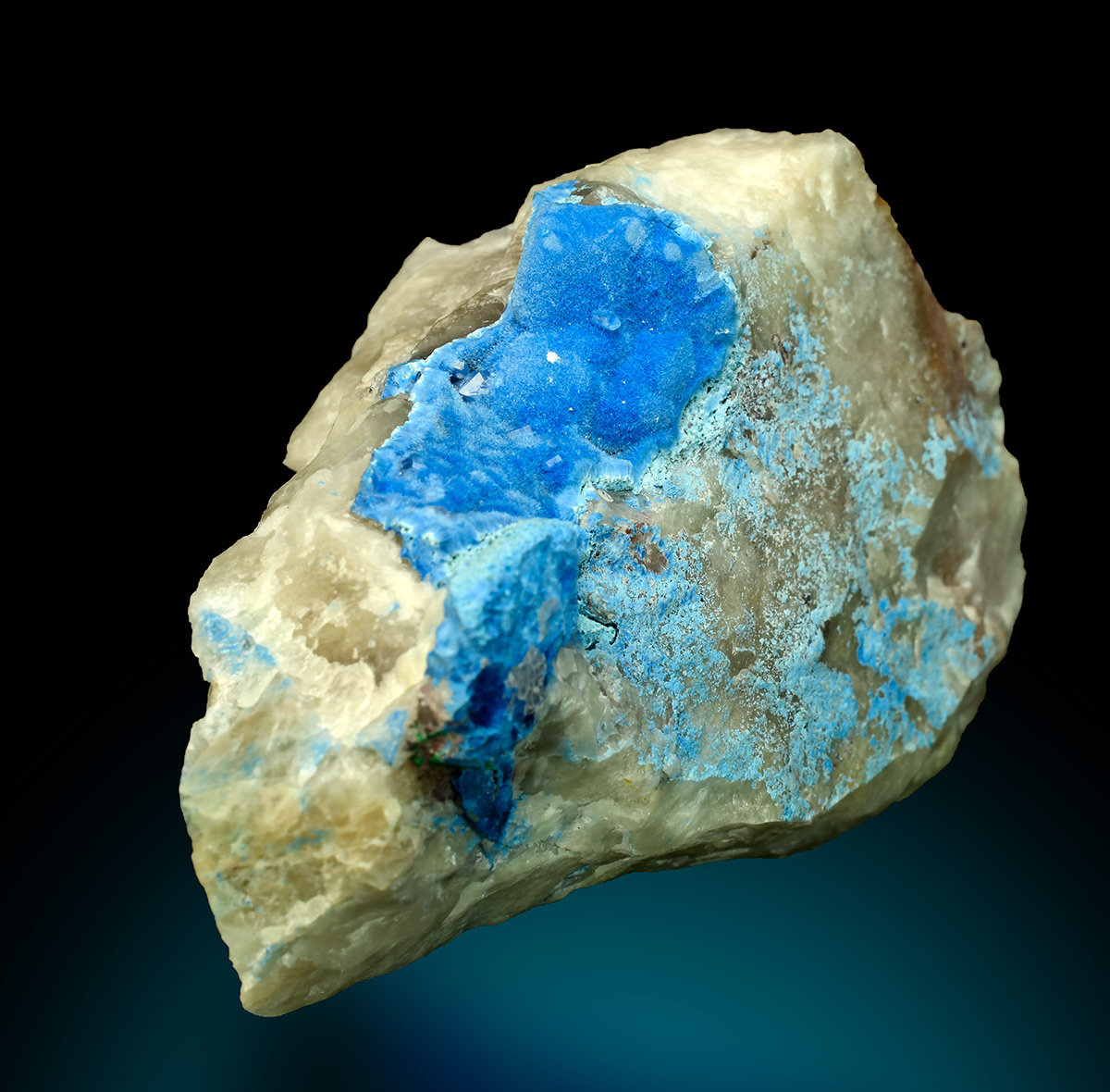 Shattuckite on quartz - Kaokoveld Plateau, Kunene Region - Namibia