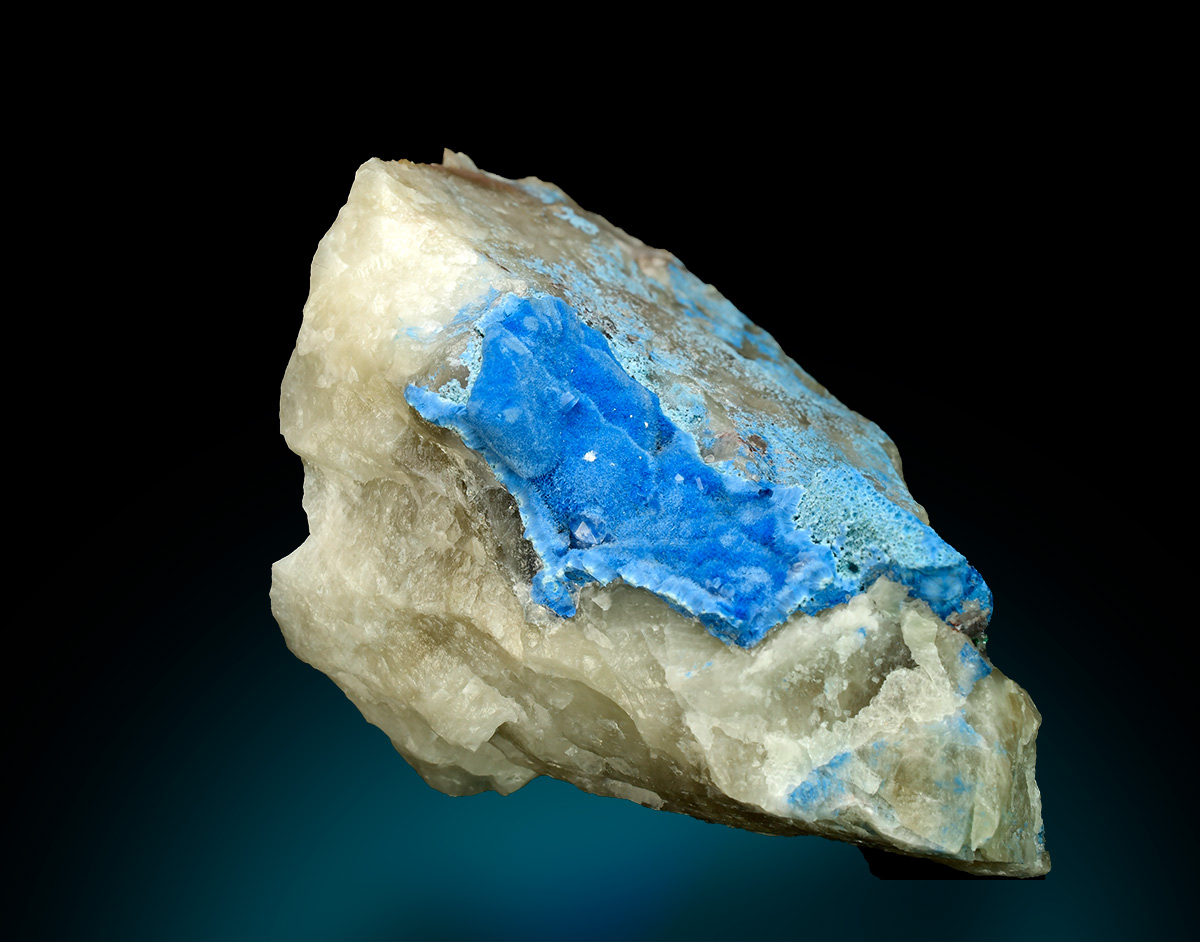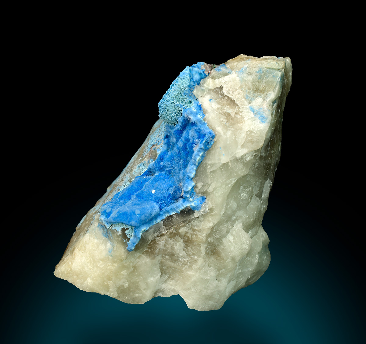 Shattuckite on quartz - Kaokoveld Plateau, Kunene Region - Namibia (#:MINS9068)