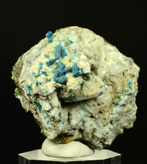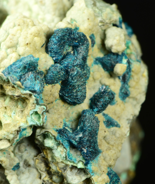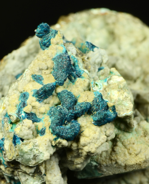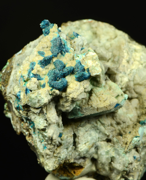 Veszelyite in clean blue rosettes of xls scattered on matrix, from a recent chinese find. Rare specie, known in only few locales in the world.