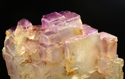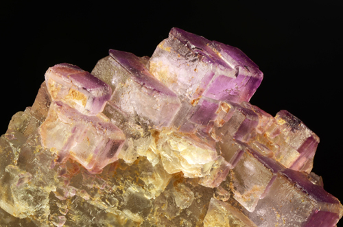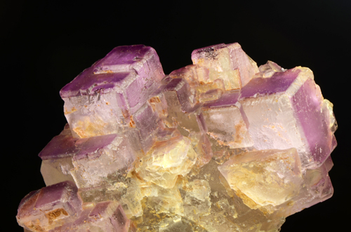 Array of cubic xls of purple Fluorite, from a classic pre-alpine locale recently re-discovered with some limited collectors dedicated workings. Note the internal phantoms and zones of more intense colour, typical of the location.
