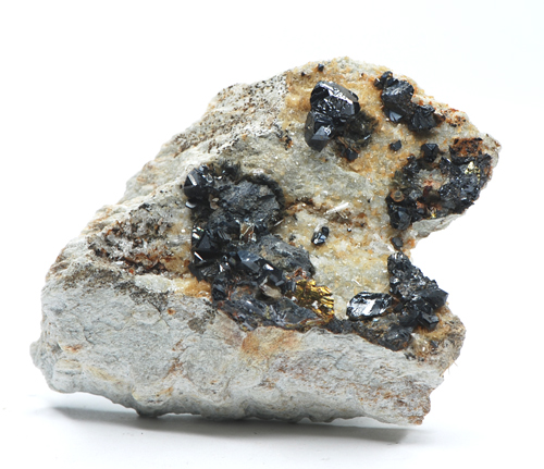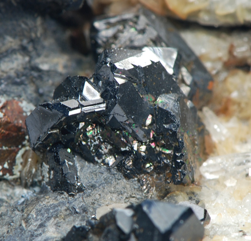 Sparkling, jet black tetrahedra os Sphalerite on matrix, with minor siderite, from a classic italian mine no longer producing. The piece can be dated to mid '80 when some workings for specimens recovery were carried out.