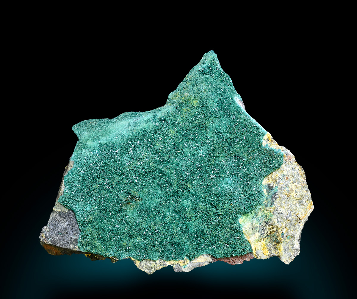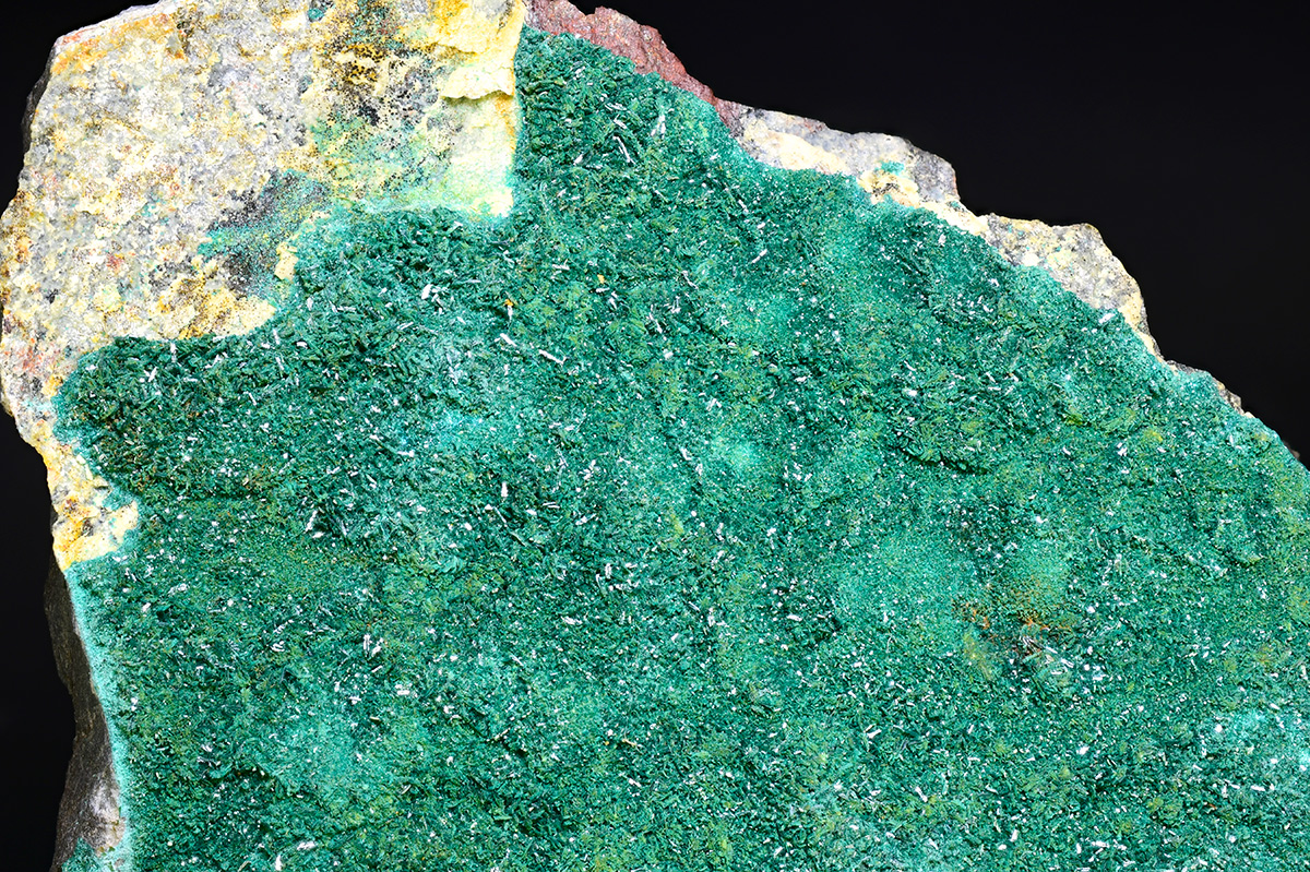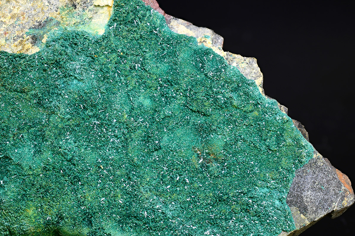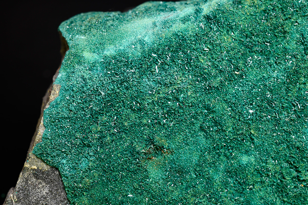 A very rich, sparkling specimen with brilliantly green microcrystals of the rare species Bottalackite embedded in matrix, from this classic locale. Ex. Richard Barstow Collection.