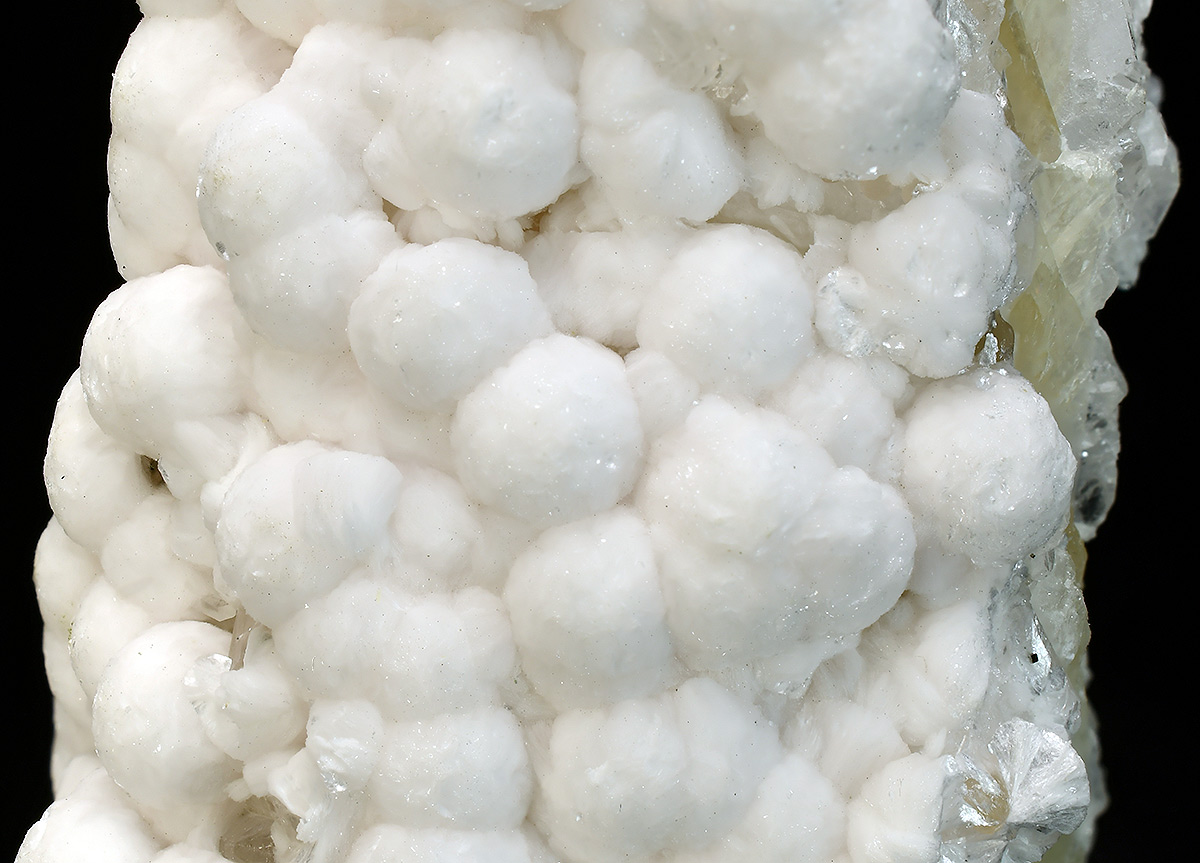 Globular aggregates of pale pink crystals of shinichengite up to 3 mm from the type locality with fluorapophyllite-(K) in association.