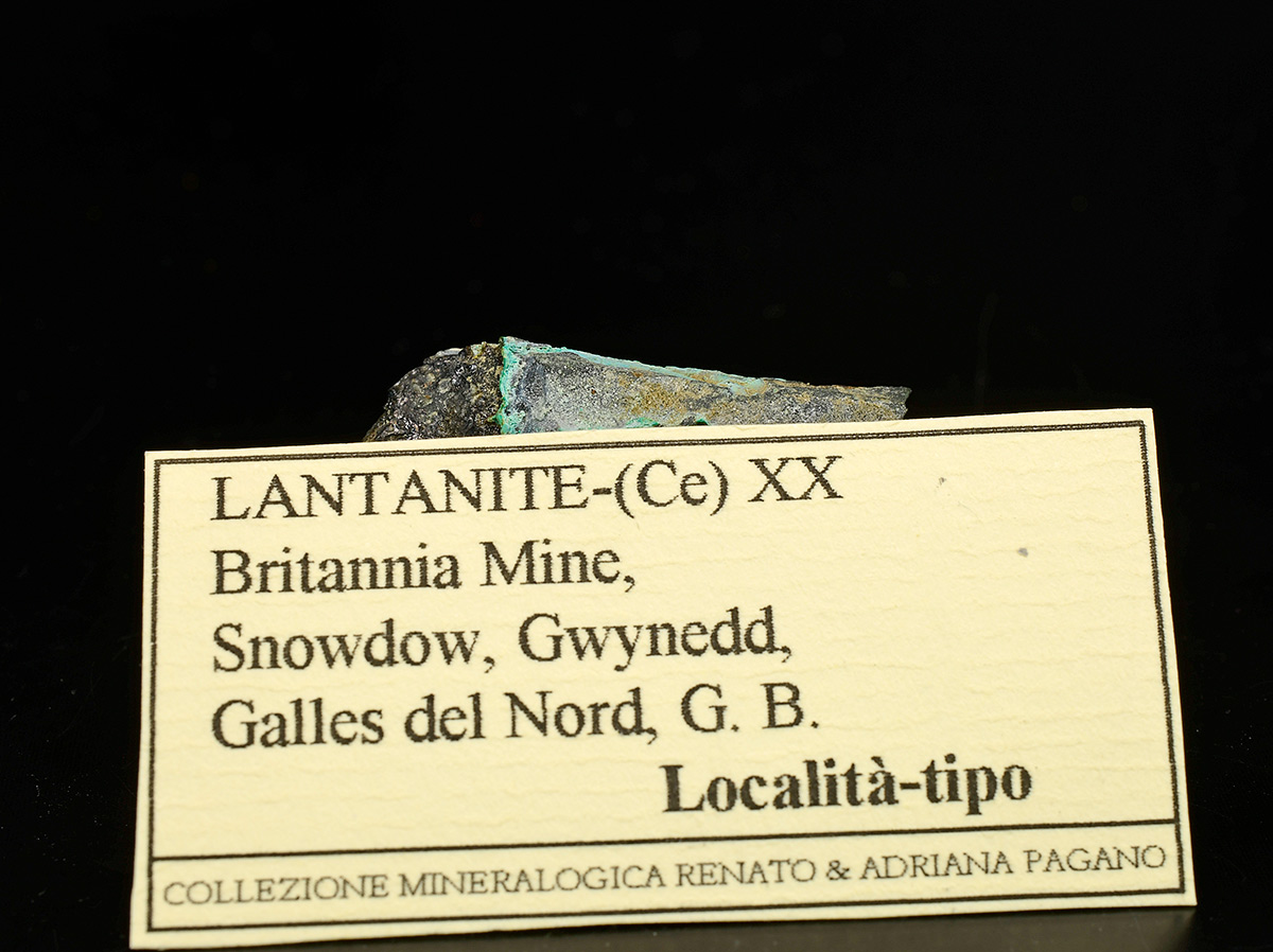 Name origin: Lanthanite was first described from Bastnäs, Sweden by Berzelius (1824). In the mid-1980s, Bastnäs lanthanite was assumed to be La-dominant, and thus named as lanthanite-(La). However, Atencio et al. (1989) re-examined lanthanite from Bastnäs, Sweden and the study indicated that the mineral (at least in the sample studied) is Ce- rather than La-dominant. The official type locality of lanthanite-(Ce) is Britannia mine, Snowdon, Wales, UK (Bevins et al., 1985), however it was in reality first found at Bastnäs mine, Sweden.