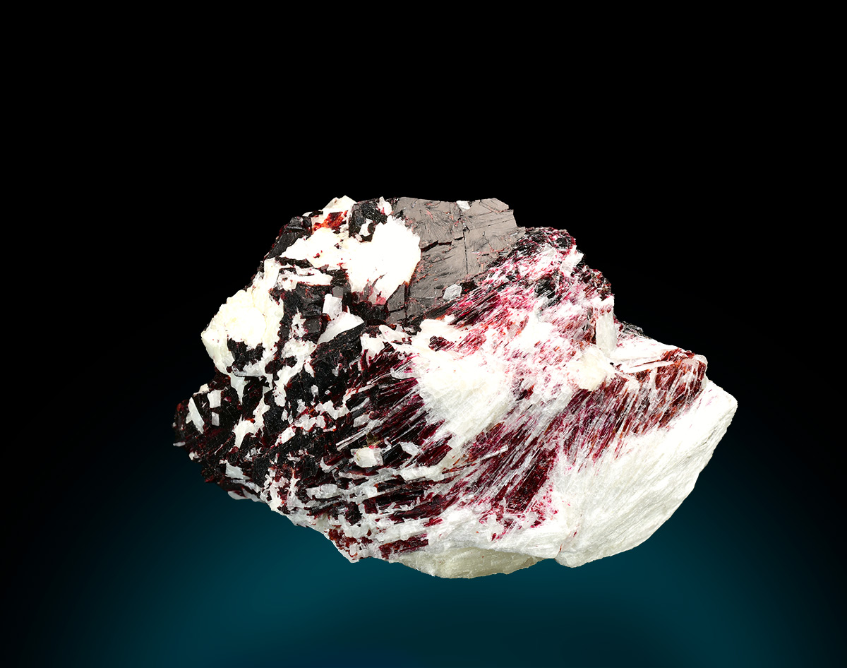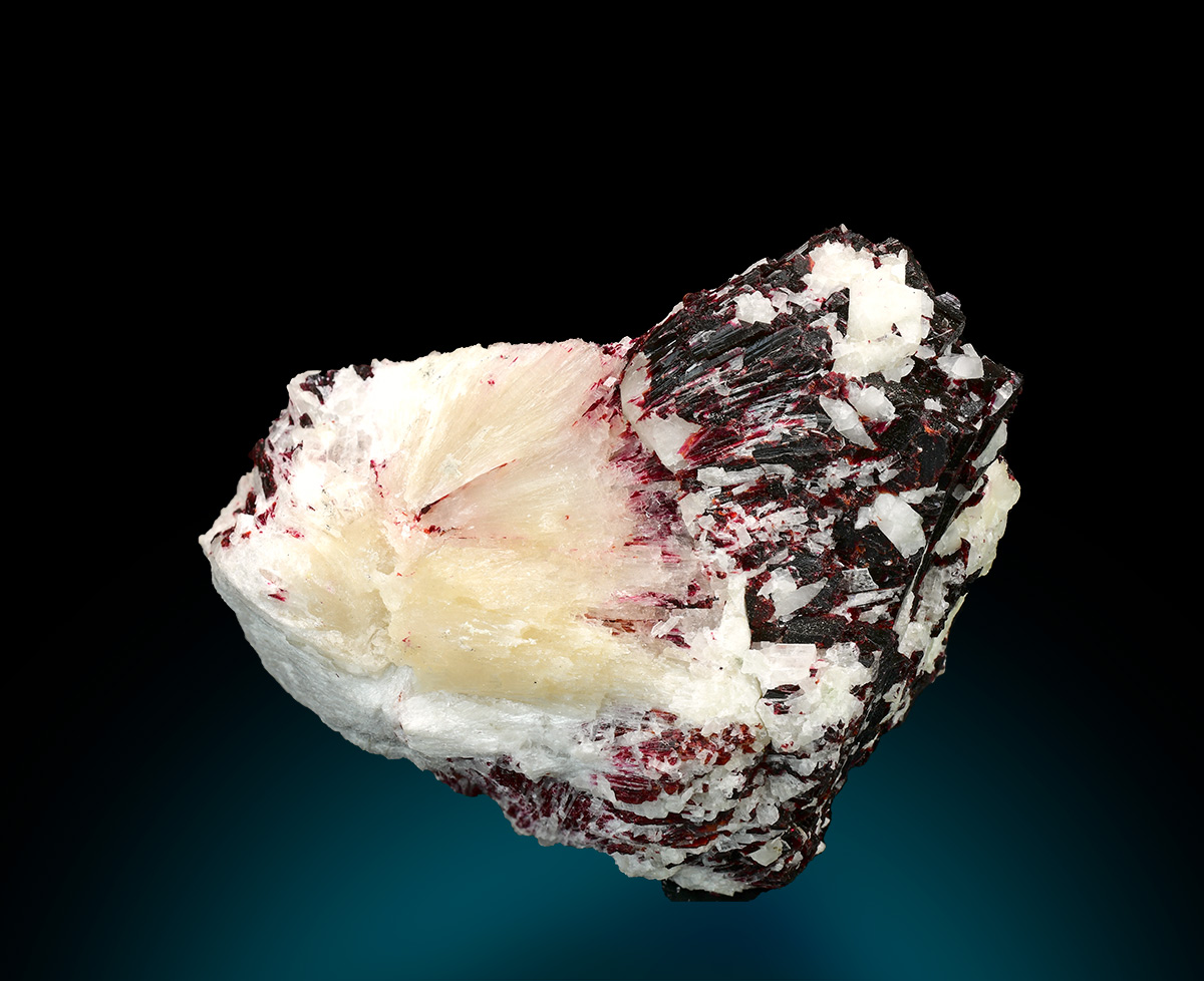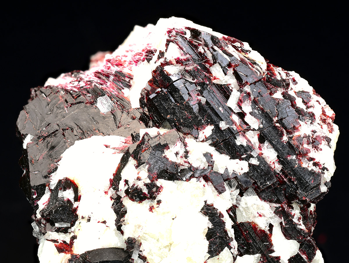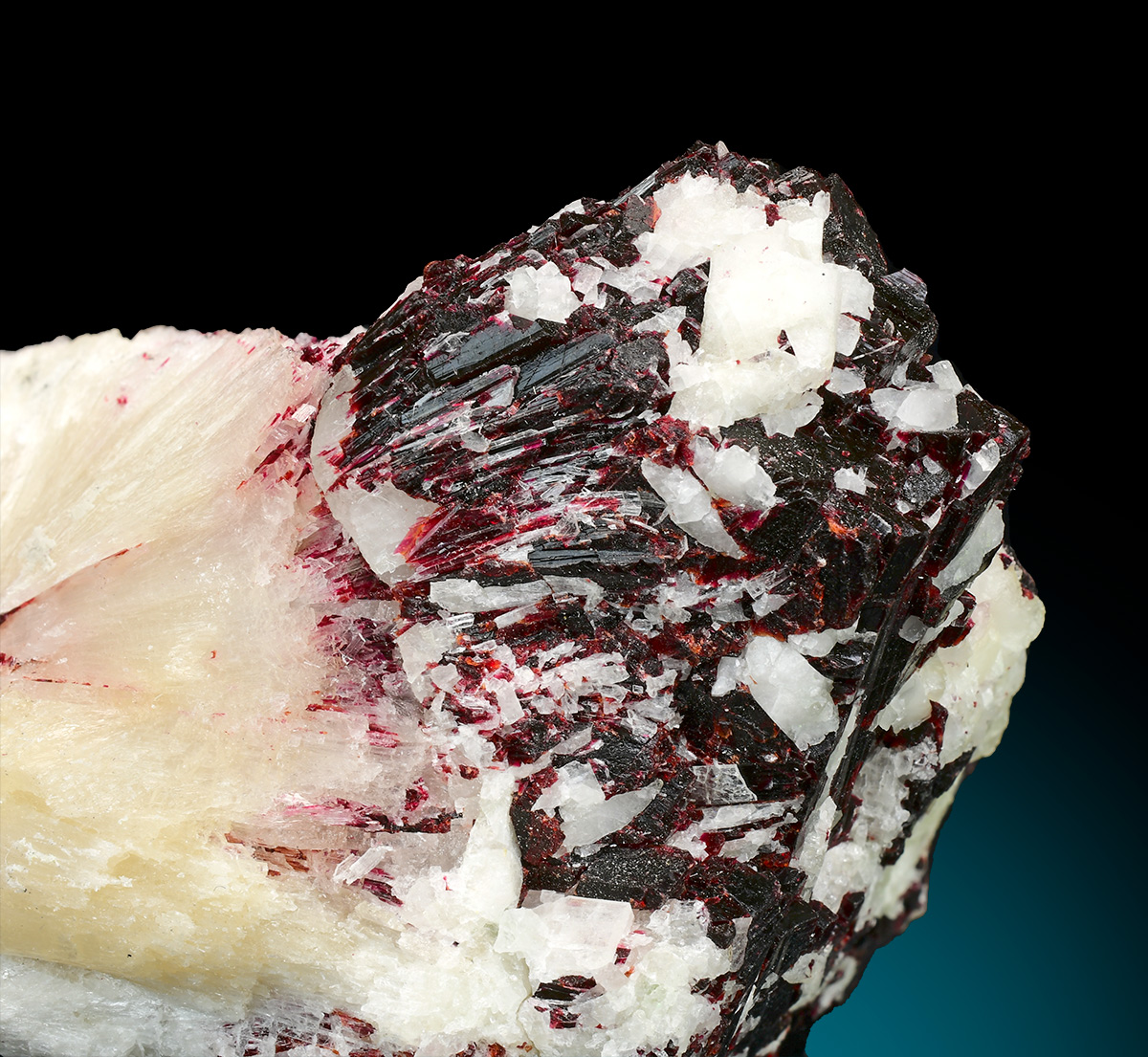 Cluster of deep wine-red Villiaumite crystals up to 1,6 cm with pectolite in association.
