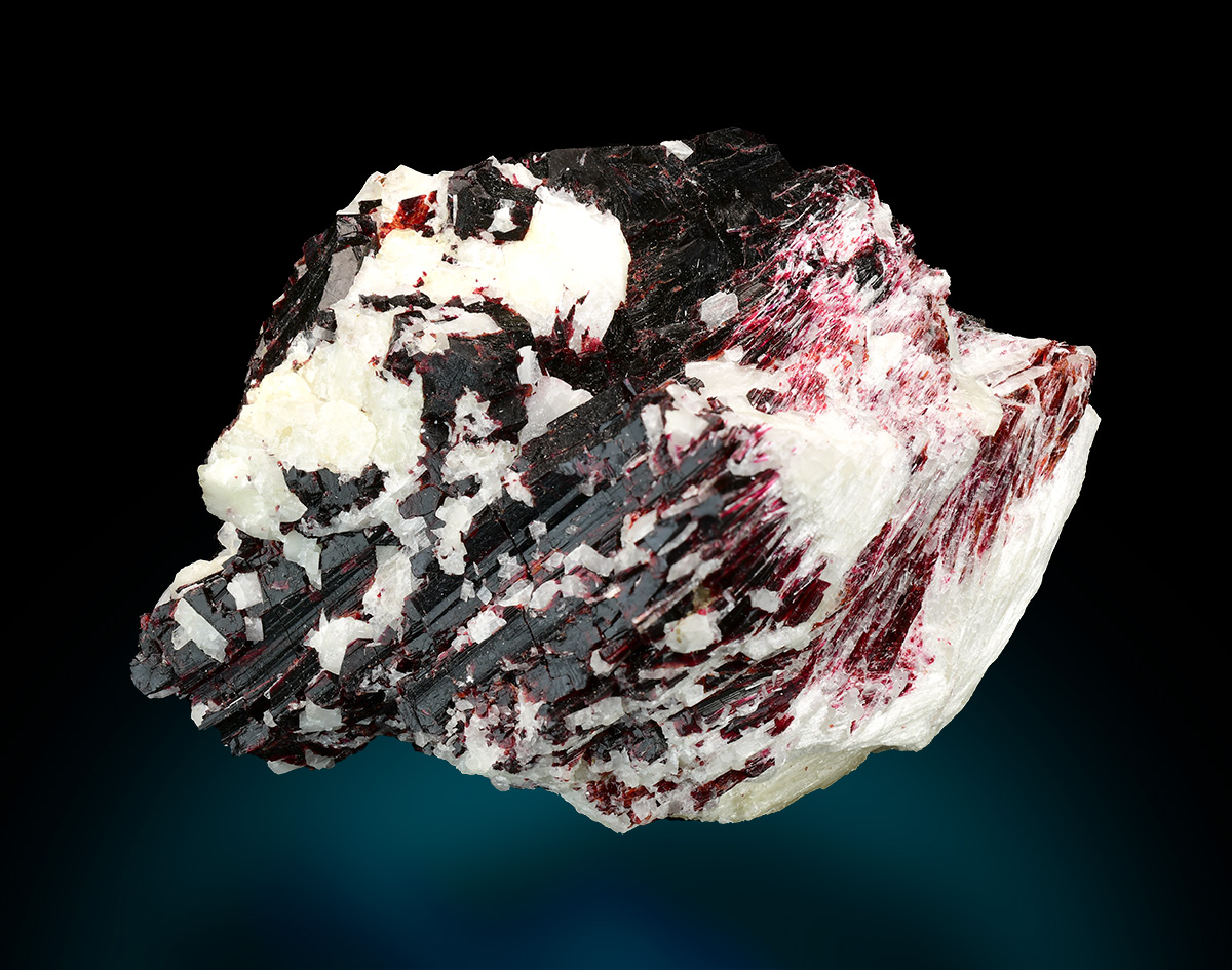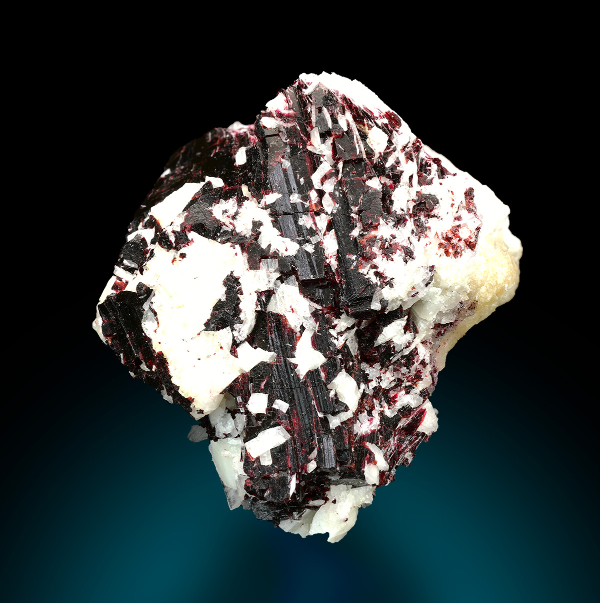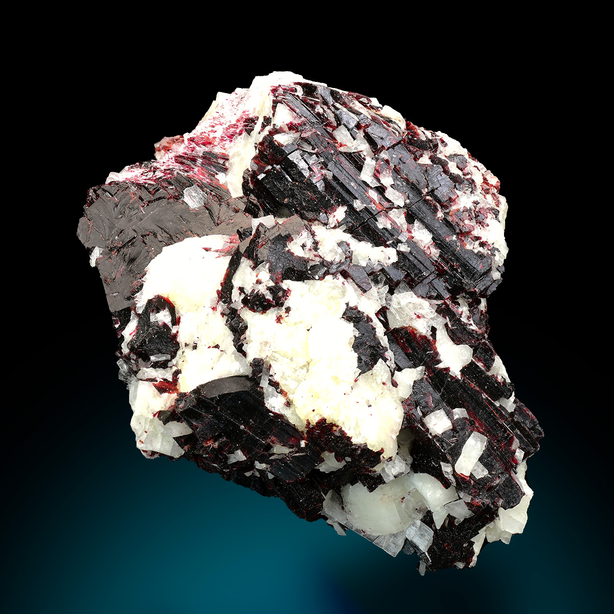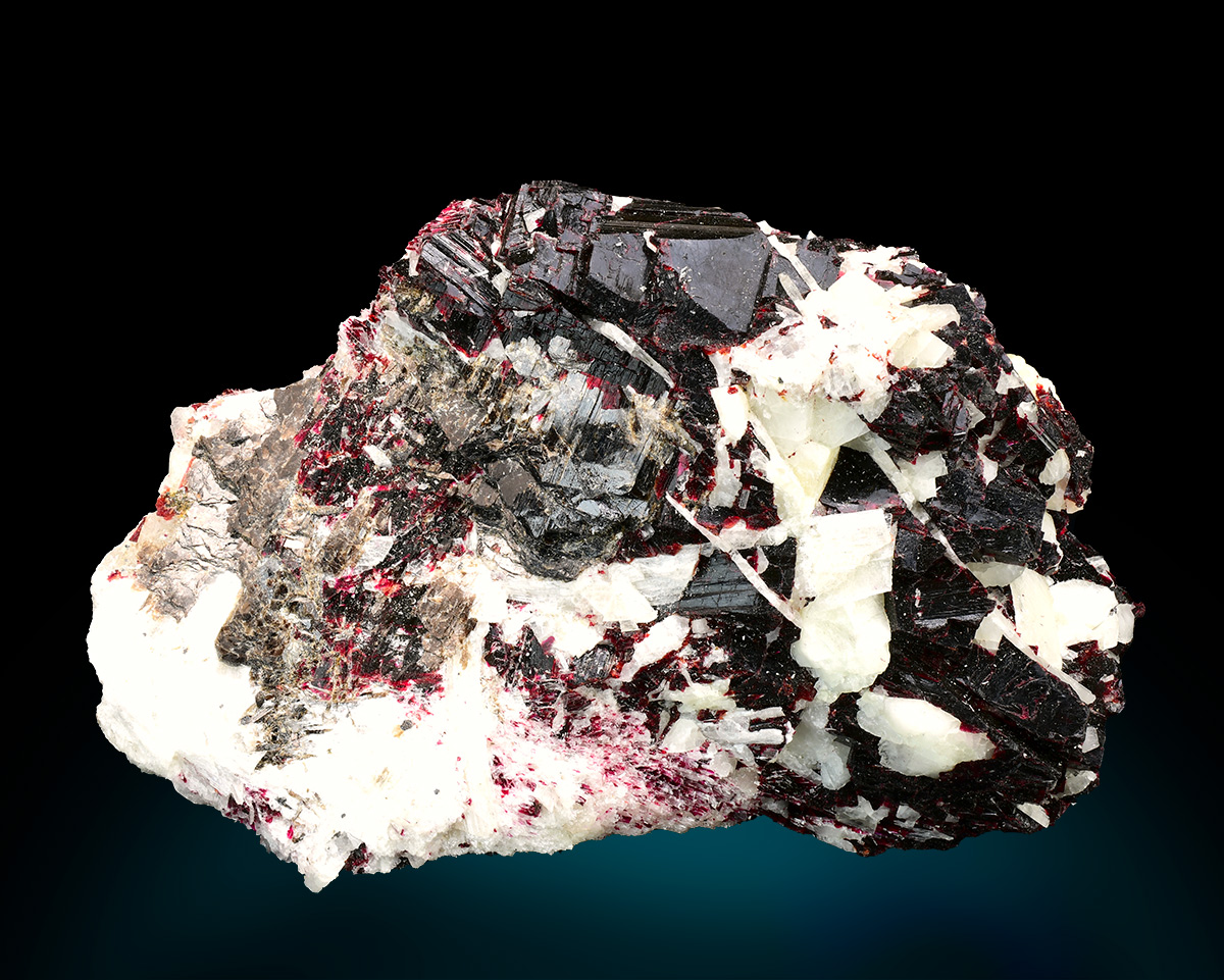 Cluster of deep wine-red Villiaumite crystals up to 1,6 cm with pectolite in association.