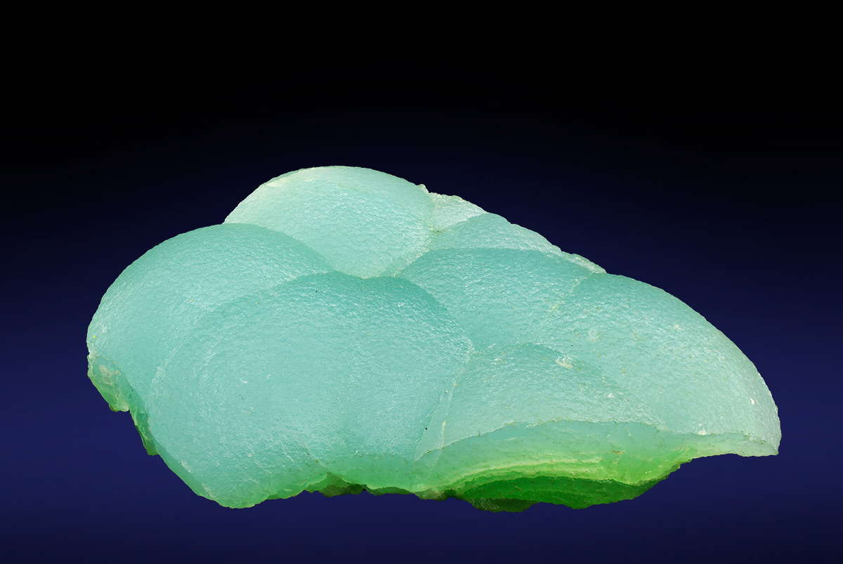 Specimen with intense blue/green Smithsonite in botryoidal mass from this classic locality.