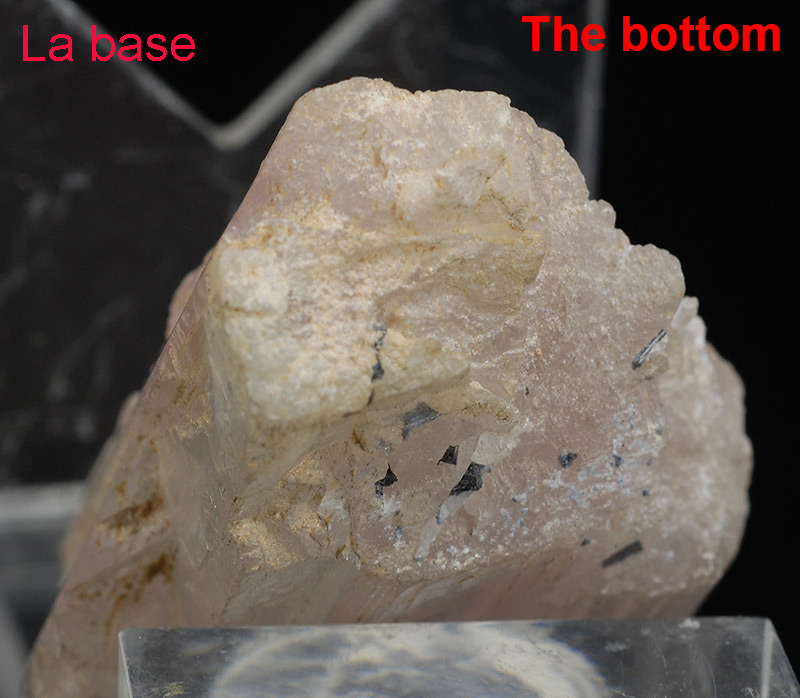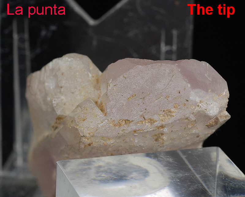 A floater of pale pink col,ored crystal of kuinzite, a variety of spodumene.