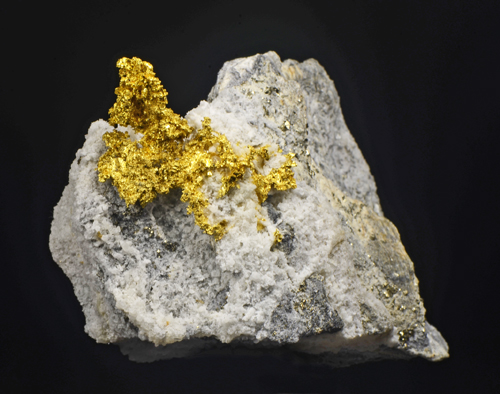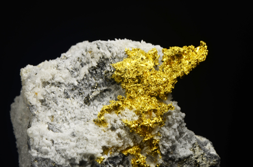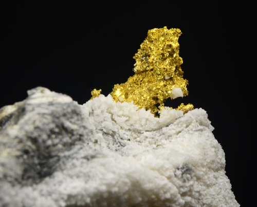 A mass of native Gold is very well exposed on a chunk of matrix. The Gold spot covers an area of around 2 cm. Native gold is not that common in Italy and the Brusson mone is the best known locale for it. Excellent locality sample!