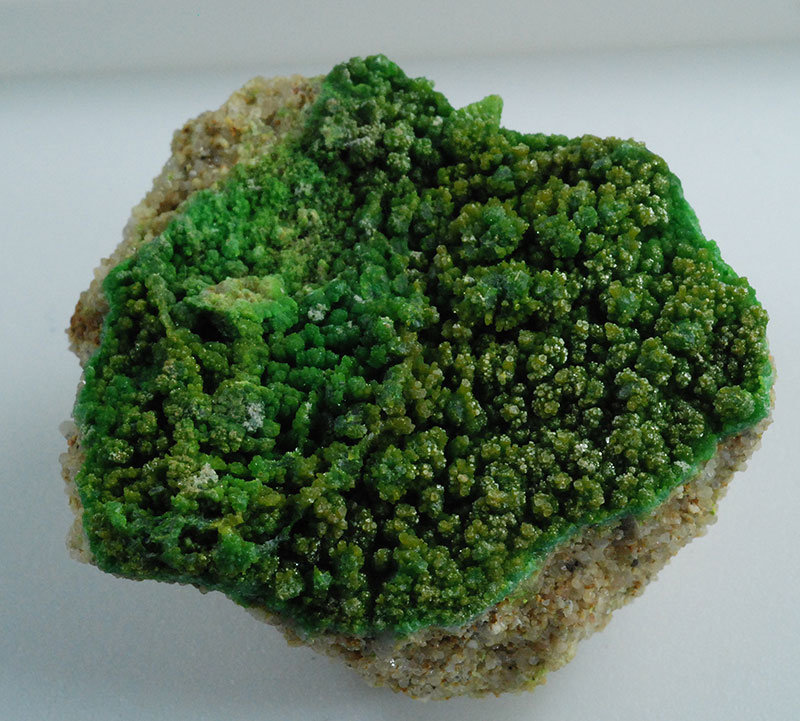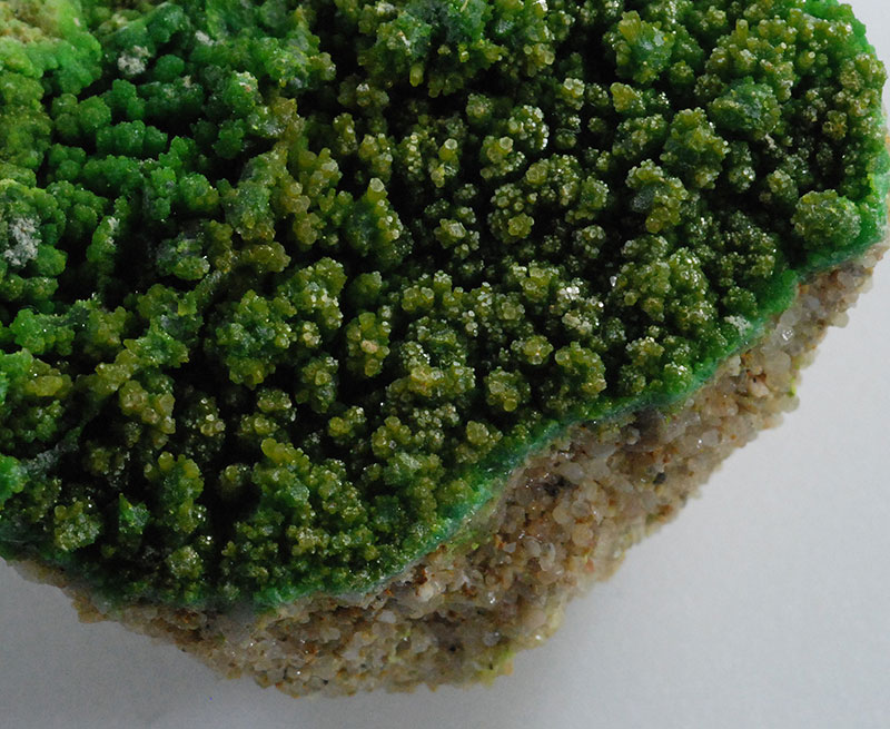 A carpet of small, bright green pyromorphite crystals completely covers the surface of this specimen. From a find spme years ago in the Eisel area of ​​Germany. Using a magnifying glass, it's quite a sight!