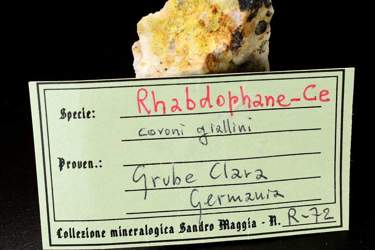 Name origin: From the Greek, rhabdos, a rod, plus phainesthai, to appear, in allusion to the bands characteristically exhibited in its spectrum, plus the suffix "-(Ce)" indicating the dominance of Ce over other REE in this species.