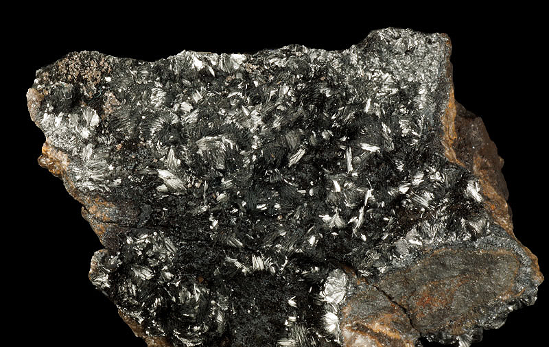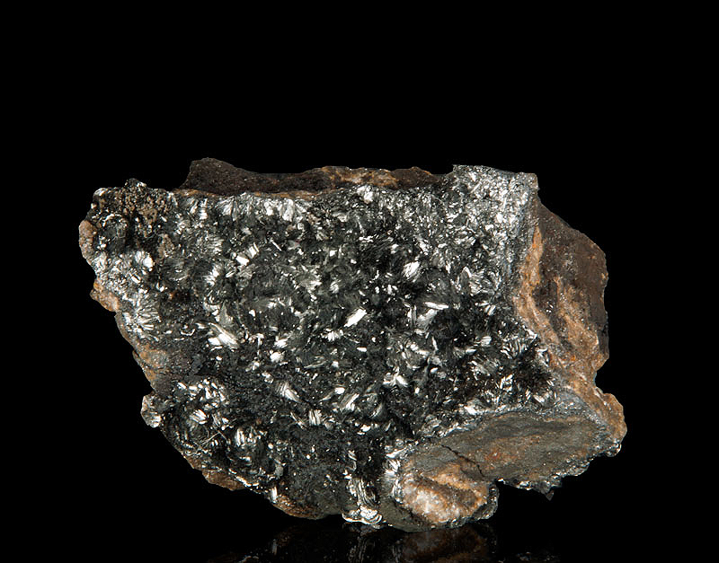 Very nice bright metallic pyrolusite xx on matrix.