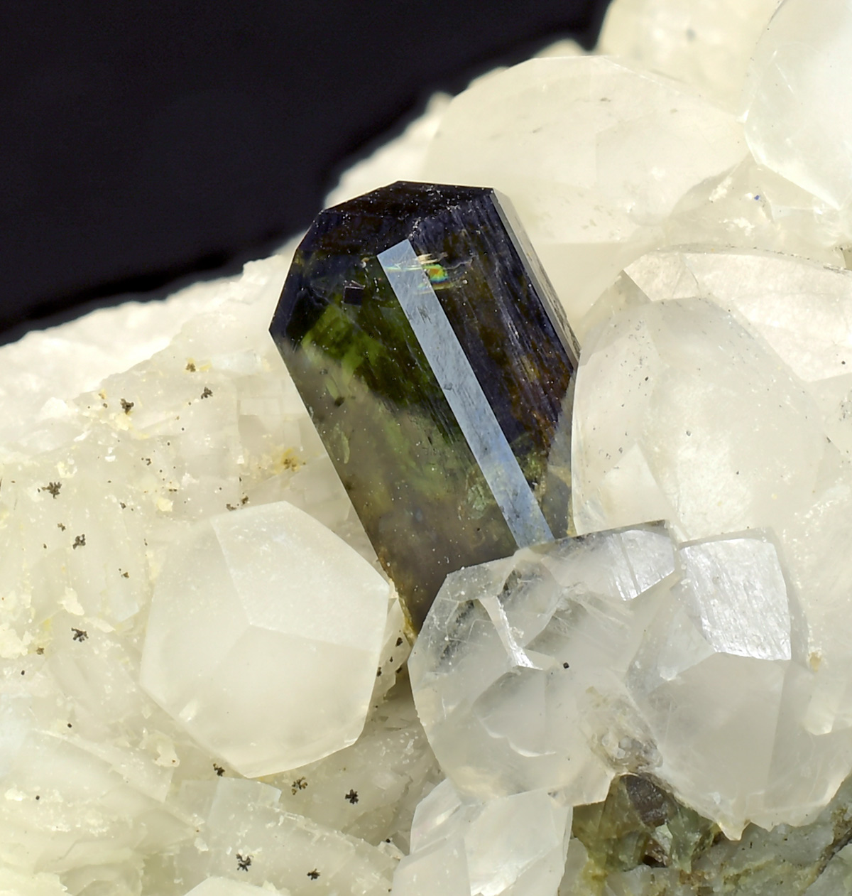 A well shaped 6 mm crystals of this REE , perched in contrasting matrix from this classic locality. All former Allanites-Ce from Trimouns seem to be Dissakisite-Ce.